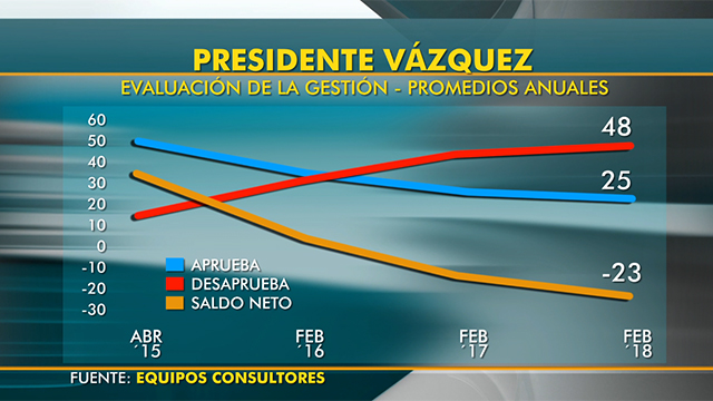 Con una aprobación de 25% y una desaprobación de 48%, la evaluación ciudadana de la gestión de Vázquez atraviesa uno de sus peores momentos.