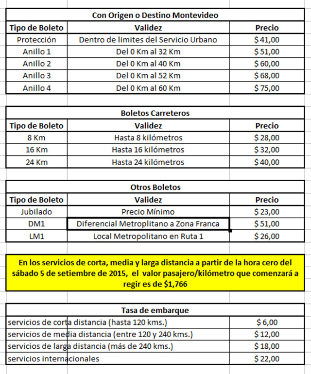 A partir de esta medianoche comenzarán a regir los nuevos valores del boleto de los servicios de transporte suburbano e interdepartamental.