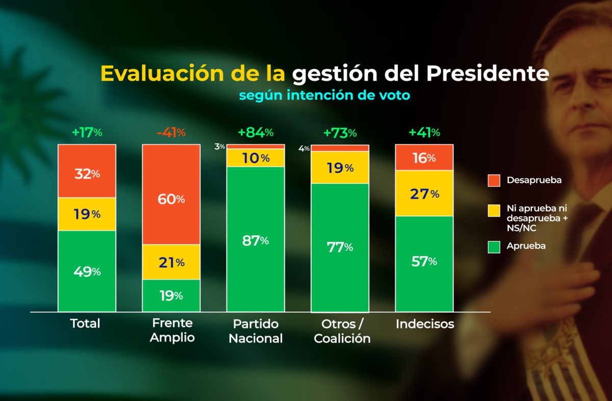 Evaluación de la gestión del presidente Lacalle Pou: 49% aprueba y 32% desaprueba