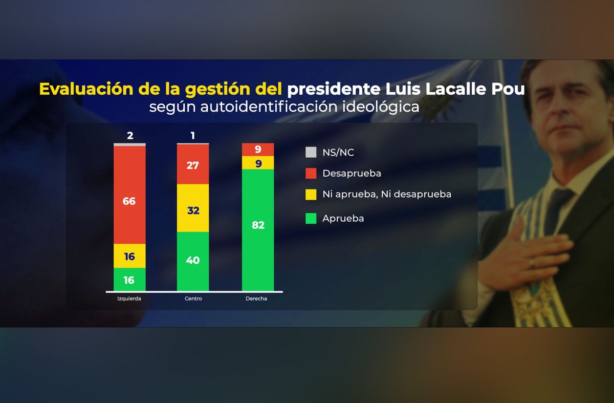 Si se comparan los juicios actuales con los que tuvieron presidentes anteriores a la misma altura del período, se observa que Lacalle Pou tiene casi la misma aprobación (de hecho, 2 puntos más) que Tabaré Vázquez en su primer gobierno en abril de 2008, y que en el gobierno de Mujica en abril de 2013 (45% contra 43%). Mujica tenía también casi la misma desaprobación que Lacalle Pou actualmente (34% Lacalle Pou y 33% Mujica). La principal diferencia con Tabaré Vázquez en su primer gobierno, es que este tenía una desaprobación significativamente menor (19%) que ambos. Por lo que, el saldo neto de Vázquez de ese momento (+24) es mayor que el actual de Lacalle Pou (+11) y que el de Mujica (+10). Todos los otros expresidentes, incluyendo Tabaré Vázquez en su último gobierno, mantenían saldos negativos a esta altura del período.