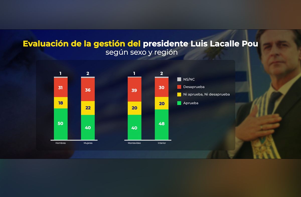 Los juicios sobre el desempeño del presidente son relativamente homogéneos en distintos segmentos de la sociedad uruguaya, aunque hay algunos matices. La aprobación a Lacalle Pou es mayor entre los hombres que entre las mujeres. Entre los primeros, tiene un balance de juicios netamente favorables (50% aprueba, 31% desaprueba). Entre las mujeres, en cambio, el balance es mucho más equilibrado (40% aprueba, 36% desaprueba). Por otra parte, también hay diferencias significativas por región de residencia. En el interior, la brecha entre aprobación y desaprobación es muy amplia (48% a 30%), mientras que en la capital hay un equilibrio casi perfecto (39% y 38% respectivamente). Por otra parte, no hay diferencias significativas según el nivel socio-económico de los entrevistados. Los juicios sobre el trabajo de Lacalle Pou son mayoritariamente homogéneos en los distintos segmentos.