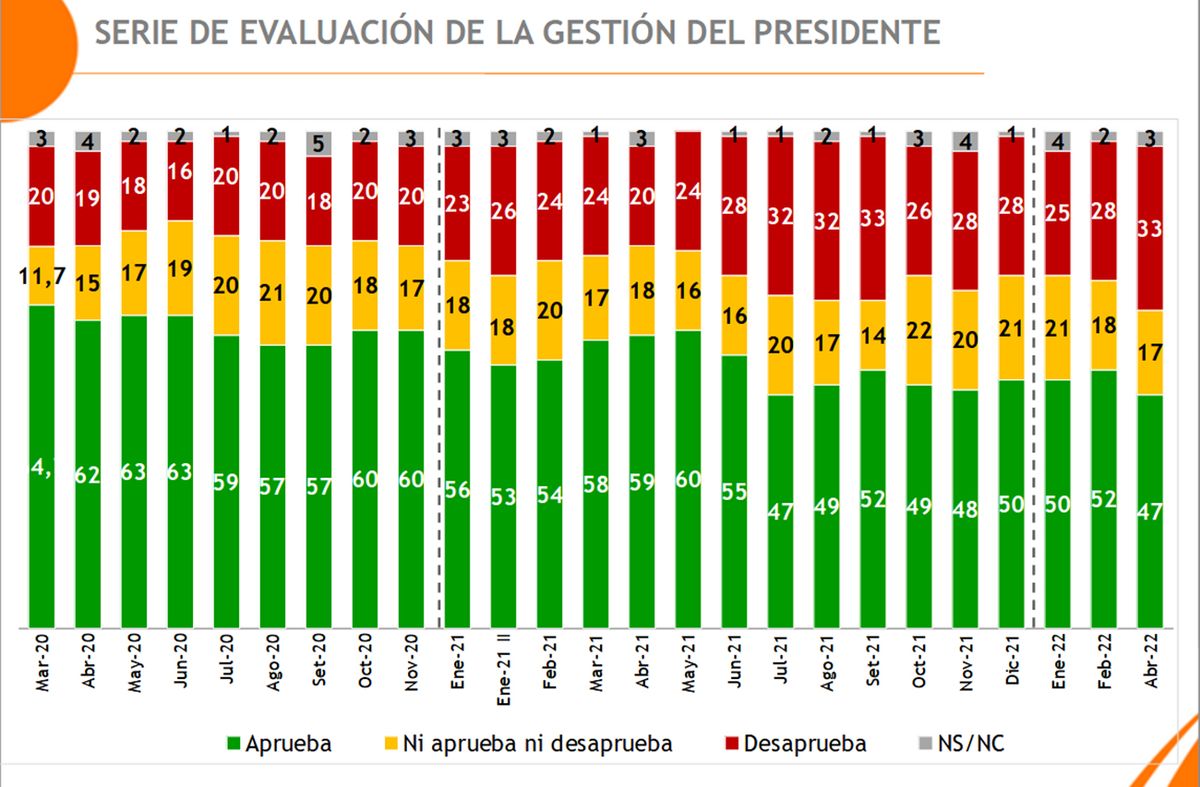 El saldo neto actual es estrictamente el más bajo en lo que va del período de gobierno, aunque ya se habían registrado iguales niveles de aprobación (47% en julio pasado) y de desaprobación (33% en setiembre).