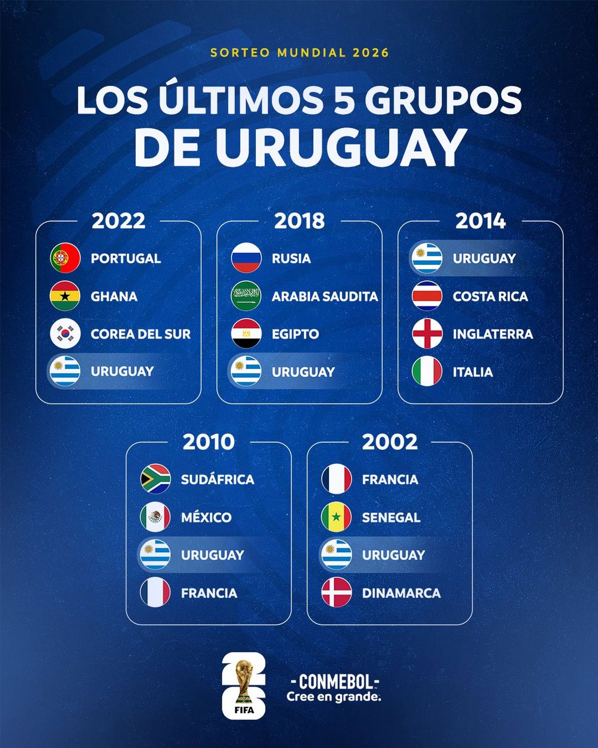 La FIFA recordó los grupos que le tocaron a varias selecciones en los últimos Mundiales, entre ellas Uruguay: