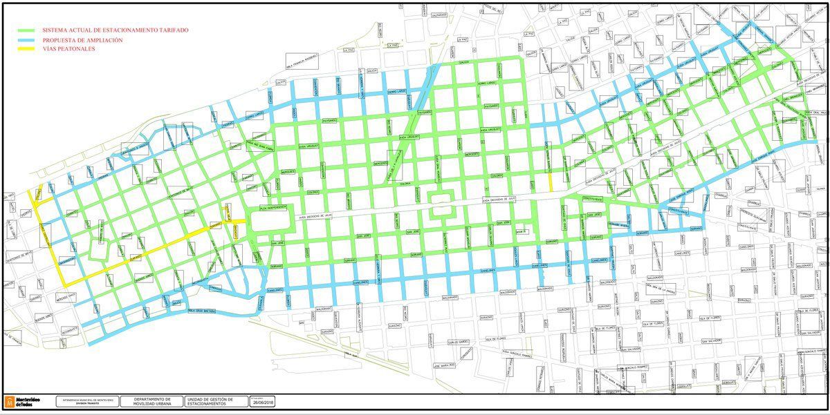 La Intendencia de Montevideo estableció nuevas zonas de estacionamiento tarifado en Cordón sur y norte. También se extiende en la Ciudad Vieja (ver mapa).