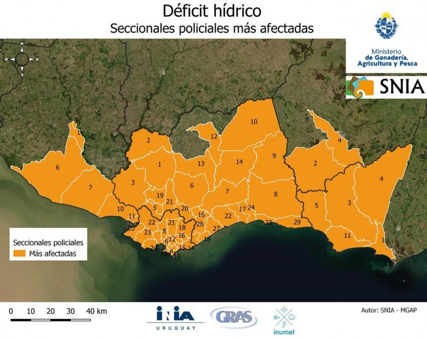 El gobierno declaró la emergencia agropecuaria por la sequía y déficit hídrico para Montevideo en todas sus seccionales, el departamento de San José parcialmente, Canelones y Maldonado en toda su extensión y algunas zonas de Lavalleja.