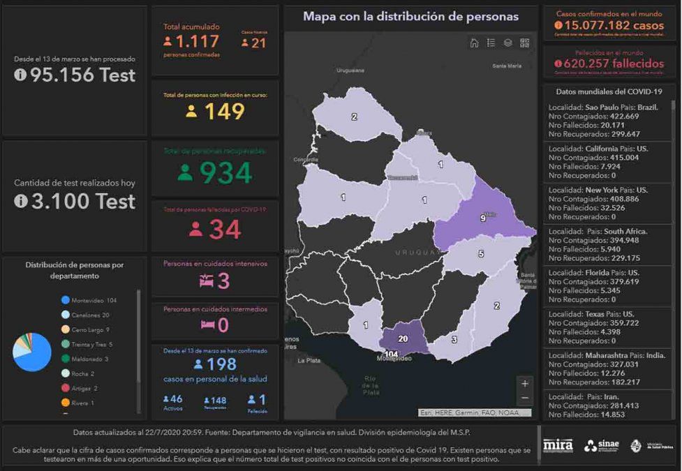 Asimismo, se reportó el 34 fallecimiento en el país por coronavirus: se trata de un hombre de 74 años del departamento de Treinta y Tres.