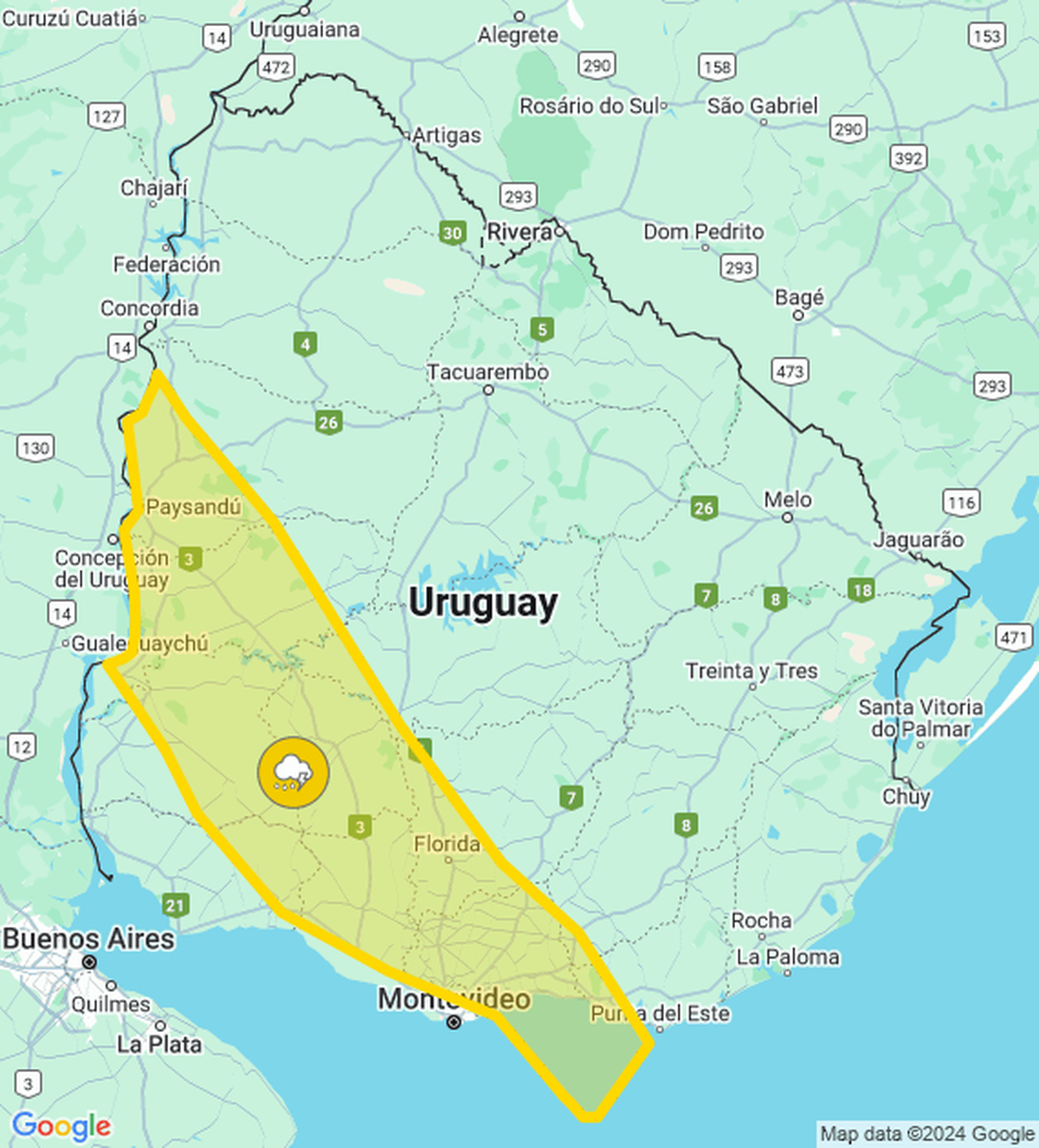 El Inumet actualizó la advertencia amarilla; mirá aquí a qué zonas afecta, y los detalles.