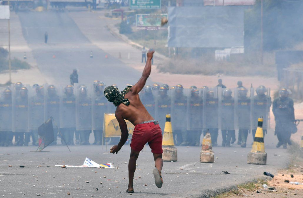 Mientras, militares brasileños montaron un cordón en Paracaima tras reyertas entre manifestantes y uniformados venezolanos en la línea fronteriza