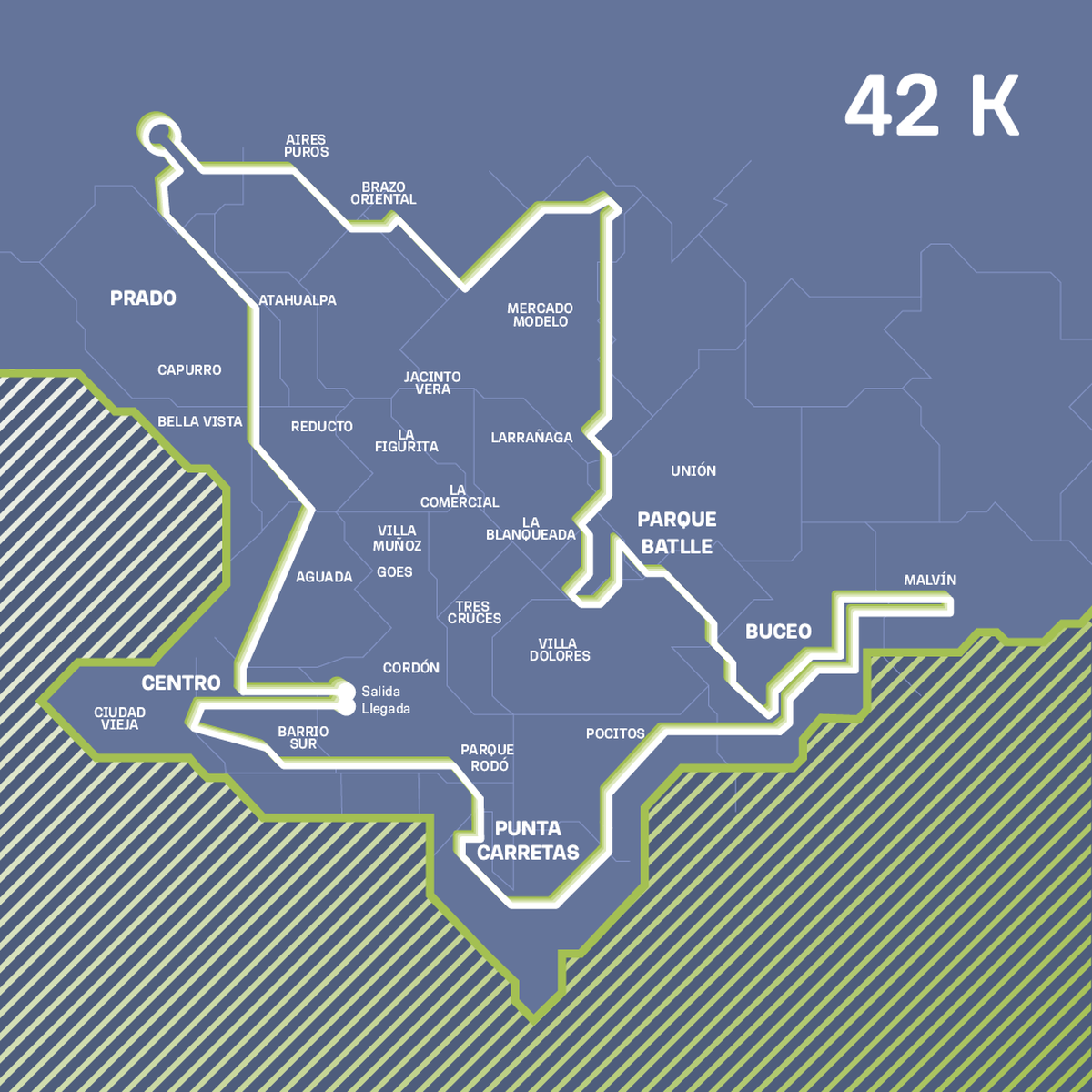La maratón, que largará de 18 de Julio y Barrios Amorín desde la hora 7:00, consta de tres recorridos: 10, 21 y 42 kilómetros. Y se detallan a continuación.