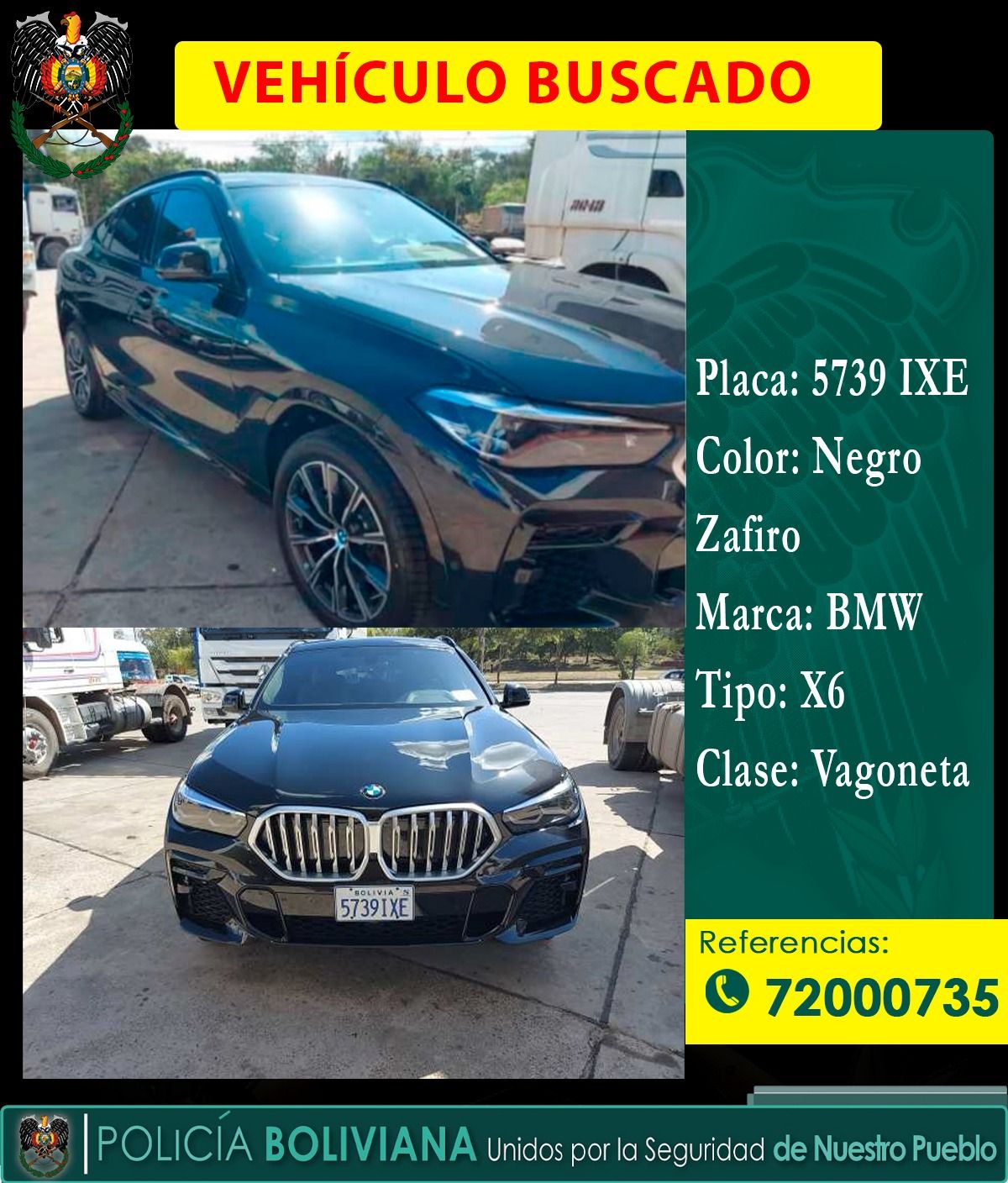 La Policía hizo pericias en el vehículo, en la noche de este lunes. La camioneta es de marca BMW X6, de color negro, y lleva la misma matrícula 5739 IXE con la que era buscada.