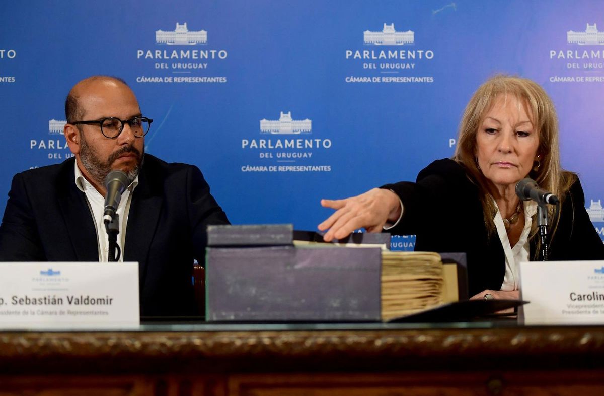 El presidente de la Cámara de Diputados Sebastián Valdomir y la presidenta del Senado Carolina Cosse (vicepresidenta de la República) anunciaron este miércoles al mediodía el hallazgo en el Parlamento de cajas con documentos de la dictadura hasta ahora no analizados ni abiertos.