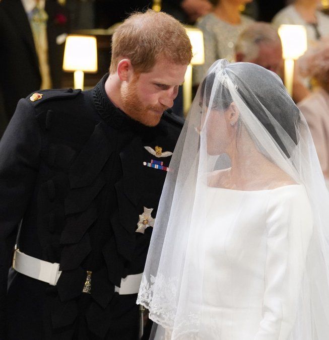 Meghan llevaba también unos zapatos Givenchy y una tiara de diamantes de 1932, prestada por la reina Isabel II, abuela del príncipe Enrique. Los pendientes y la pulsera eran de la casa Cartier.