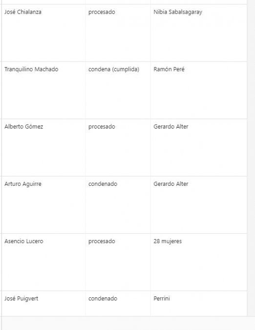 Al número de indagados con pedidos de procesamiento se deben restar aquellos que tienen más de un pedido por distintas causas. También hay varios que han sido procesados y condenados, y otros que fallecieron y tenían pedidos de procesamiento pendientes.