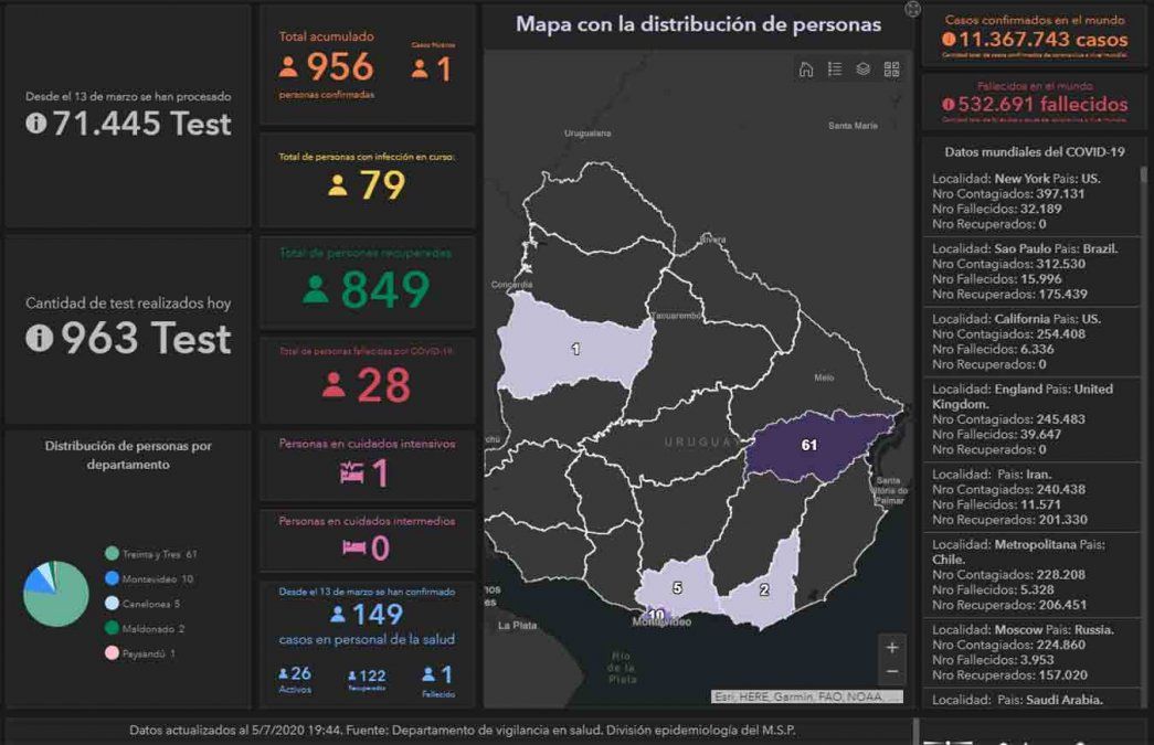 Los departamentos con casos activos hasta el momento son: Canelones, Maldonado, Montevideo, Paysandú y Treinta y Tres.