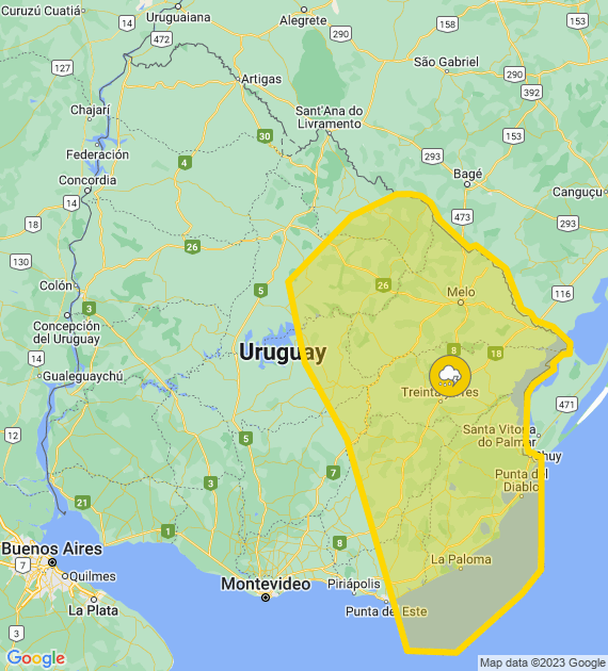 Ocho departamentos del país están bajo una alerta amarilla emitida por el Instituto Uruguayo de Meteorología (Inumet), que se extenderá hasta al menos la hora 15:00 de este viernes. La advertencia es por tormentas fuertes y lluvias intensas.