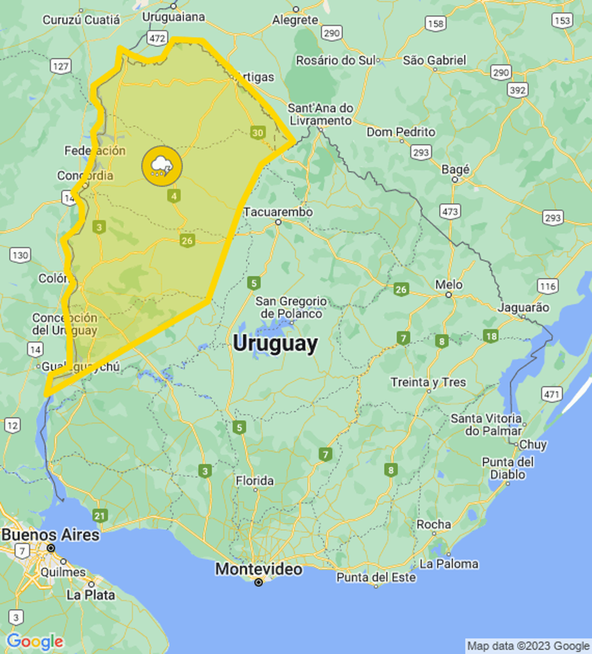 El Instituto Uruguayo de Meteorología (Inumet) emitió este domingo una alerta meteorológica amarilla para varias localidades del país. Es por tormentas fuertes y lluvias intensas.