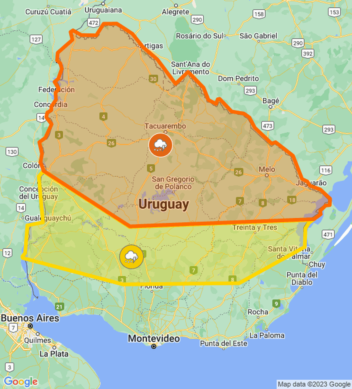 Inumet actualizó la advertencia por persistencia de tormentas puntualmente fuertes y lluvias abundantes