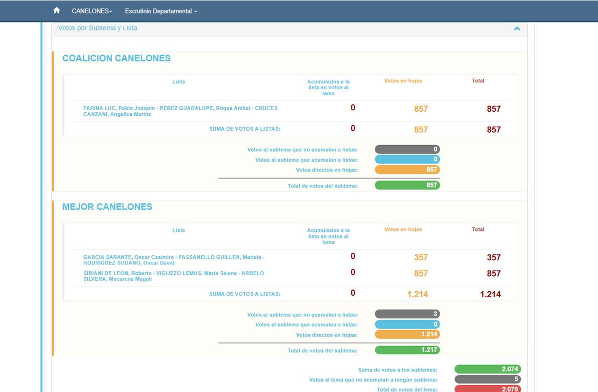 Los candidatos que igualaron en 857 votos son Pablo Farina (Partido Colorado) y Roberto Siriani (Partido Nacional).