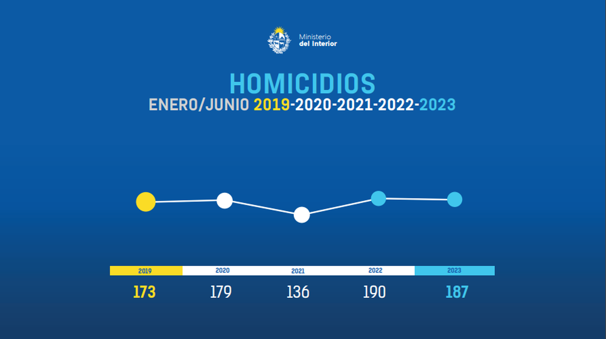 En el primer semestre de 2019 hubo 173 homicidios, en el primero de 2020, 179. En 2021, 136; en 2022, 190 y en 2023, 187.