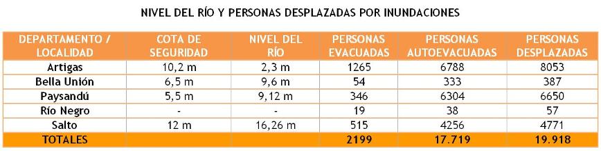 En el siguiente cuadro figura el nivel del río y el detalle de personas evacuadas, autoevacuadas y desplazadas por departamento: