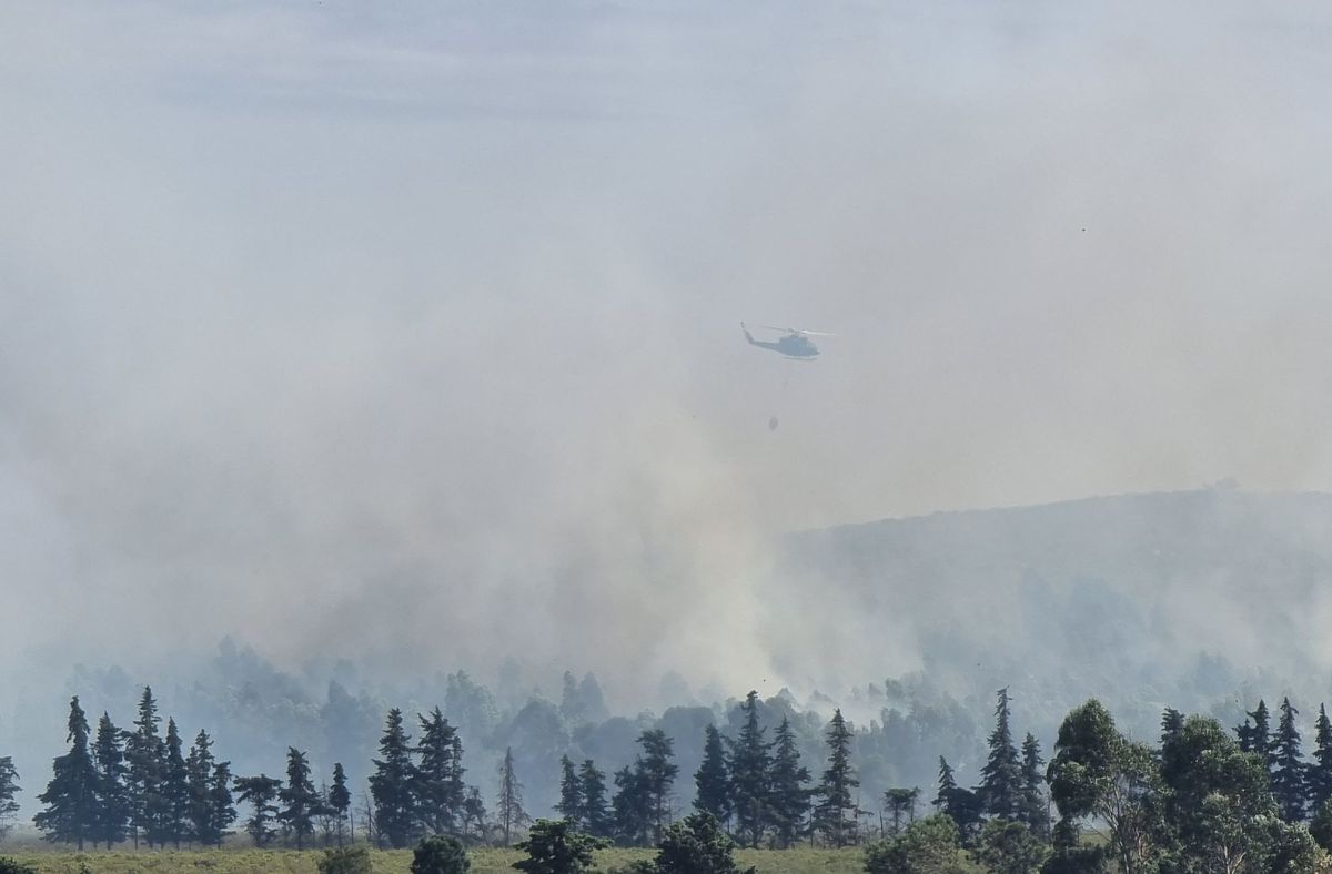 "Hora 05:30 día 28 de diciembre el foco que se encontraba en propagación en horas de la noche alcanzó un monte nativo de altura, procediendo con la primera luz del día a emplear maquinaria pesada con la cual se realiza calles cortafuego para evitar la propagación sobre plantaciones privadas y monte forestal. También se trabaja con dos helicópteros con helibalde sobre el flanco derecho del fuego", indicó Bomberos este domingo.
