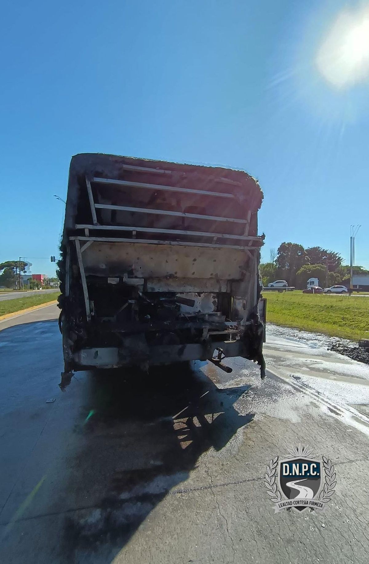 Según informó Policía Caminera, no hubo heridos. El fuego fue controlado y se limitó a la parte de atrás del ómnibus.