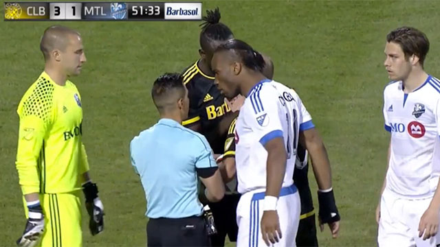 El capitán de Columbus, tuvo que mediar entre los dos compañeros, porque ninguno daba el brazo a torcer.