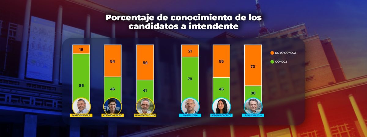 La encuesta de Equipos también muestra un grado muy distinto de conocimiento de los distintos candidatos por parte del público. Es notorio que hay dos figuras (Mario Bergara y Martín Lema) cuya trayectoria destaca sobre los demás: ambos fueron ministros en distintos gobiernos, y ambos fueron (y son) senadores de la República. La amplia mayoría de los montevideanos (85%) conoce quién es Mario Bergara, y un porcentaje algo menor (79%) sabe quién es Martín Lema.