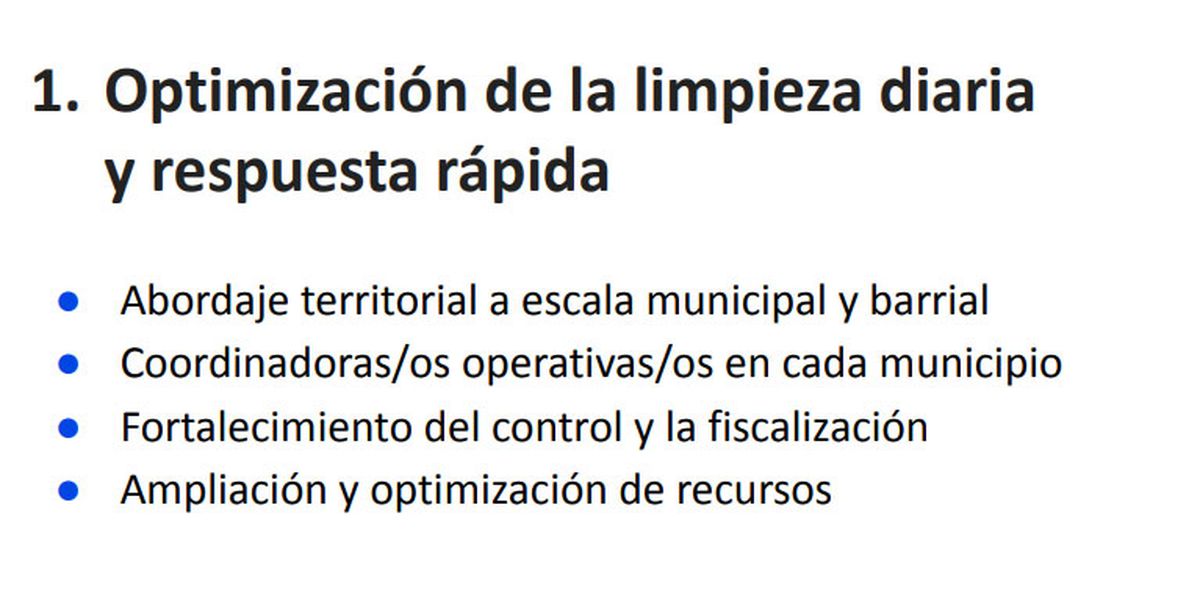 1) Optimización y fortalecimiento de las tareas de limpieza y respuesta rápida en cada barrio.