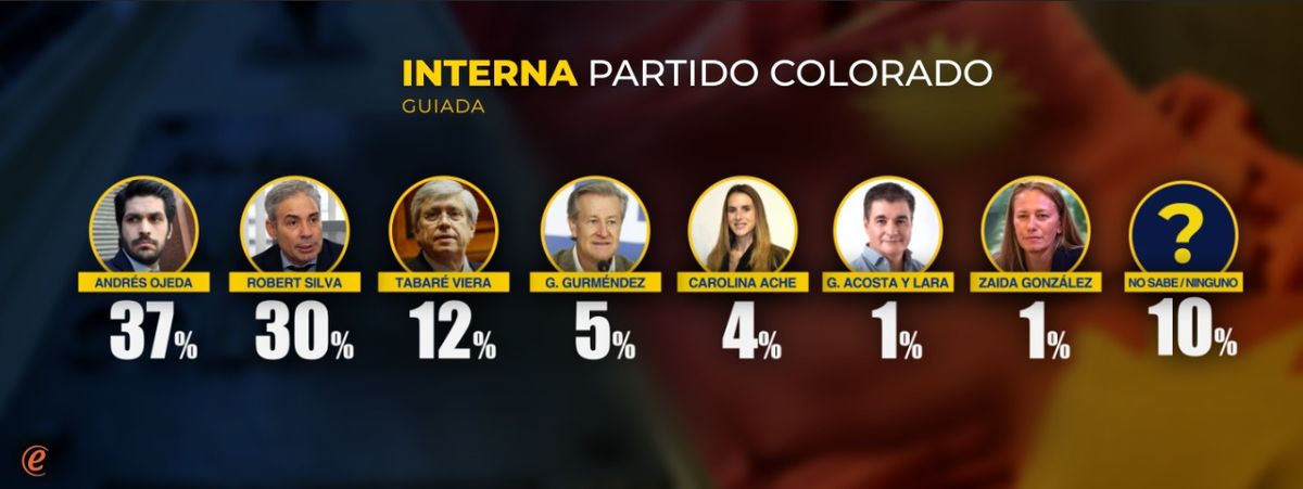 Interna del Partido Colorado: Ojeda 37%, Silva 30%, Viera 12%, Gurméndez 5%