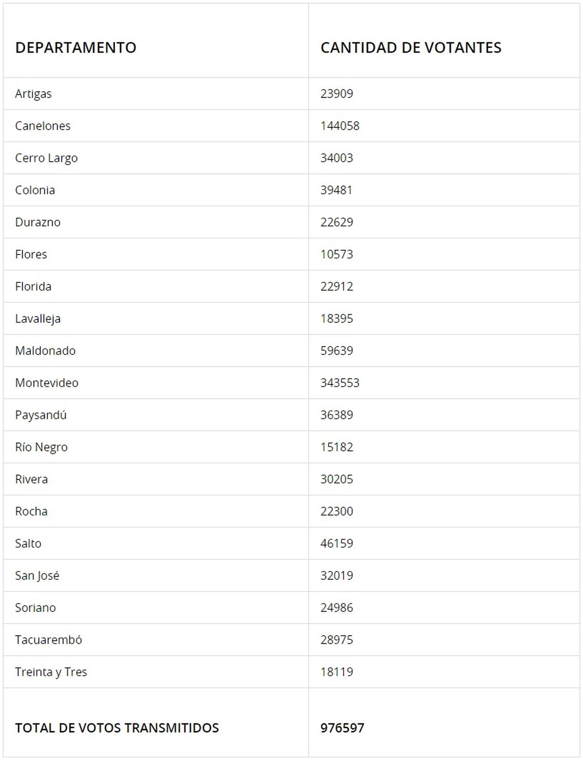 En total, al cierre de la votación habían sufragado 976.597 ciudadanos, de acuerdo al siguiente detalle.