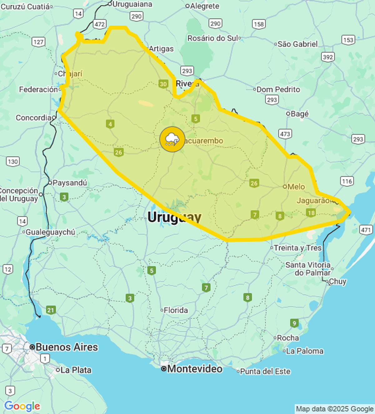 El Instituto Uruguayo de Meteorología (Inumet) mantiene vigente en la tarde de este miércoles una advertencia amarilla por persistencia de tormentas puntualmente fuertes. La actualizará nuevamente a la hora 18:00.