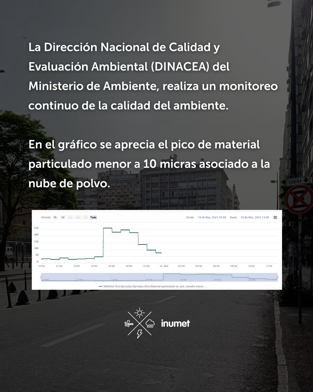 Más tarde, Inumet corrigió la información y señaló que el polvo se disipará el jueves.