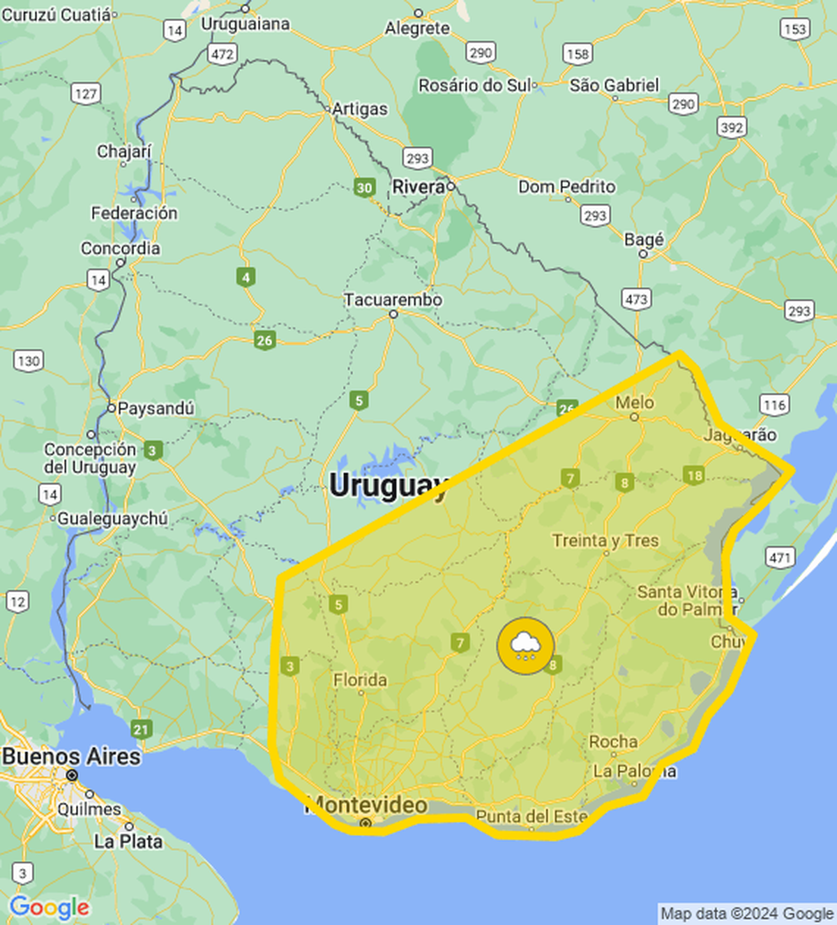 El Instituto Uruguayo de Meteorología (Inumet) extendió en la tarde de este lunes la alerta amarilla que abarca varias localidades, por persistencia de lluvias. Se actualiza a la hora 22:00 o ante eventuales cambios.