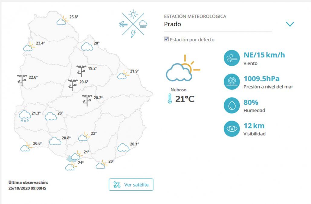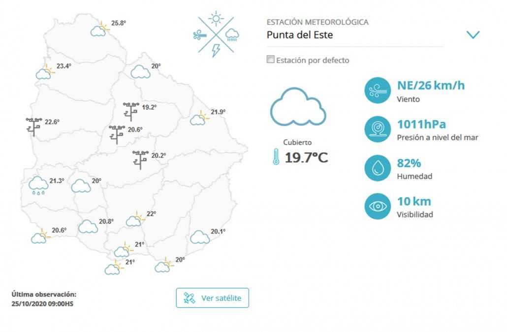 El este está cubierto y seguirá nuboso y cubierto con precipitaciones y probables tormentas. El viento del NE/26 km/h, la humedad 82%, la visibilidad 10km, la mínima 15º y la máxima 23º.