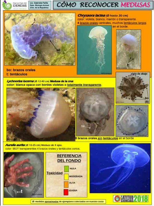 Según explicó a Subrayado Gabriela Failla, bióloga de la Facultad de Ciencias, la especie presente es llamada "medusa de la cruz" o "Lychnoriza lucerna" y es la menos peligrosa.
