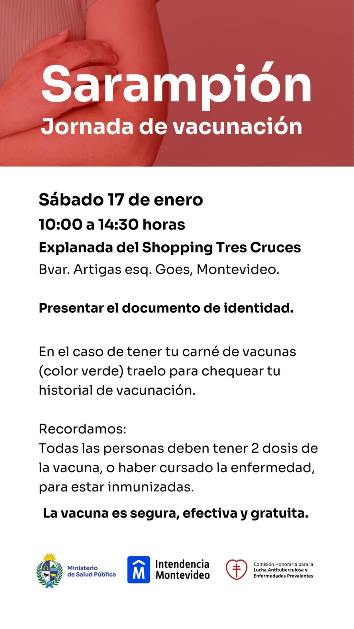 Promovida por el Ministerio de Salud Pública, la Intendencia de Montevideo y la Comisión Honoraria para la Lucha Antituberculosa y Enfermedades Prevalentes, la jornada especial de vacunación se da tras la confirmación de un caso de sarampión en Montevideo, asociado a una persona que estuvo en Uruguay y su contagio fue confirmado en Chile.
