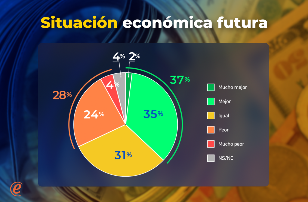 Con relación a lo esperado para el próximo año los optimistas (37%) son más que los pesimistas (28%), con un saldo positivo de +9. Por tanto, como suele ocurrir, no hay unanimidades respecto a la forma en que se percibe la economía, y se registra una estructura habitual en la que la mirada al futuro es más positiva que la percepción actual.