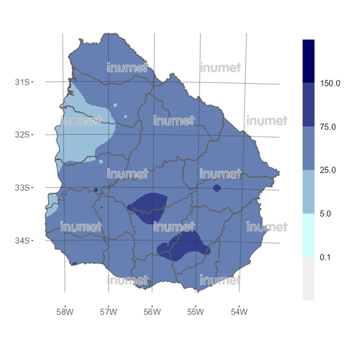 De acuerdo a los registros de Meteorología, en las últimas horas llovió en todo el país. Los acumulados más altos se dieron en el sur de Durazno y norte de Florida, y en Lavalleja.