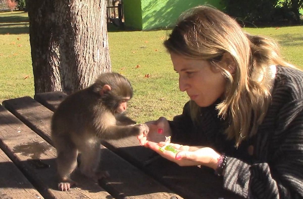 La historia de Jacinta, la mona huérfana que se cría con el cuidador de la reserva Tálice
