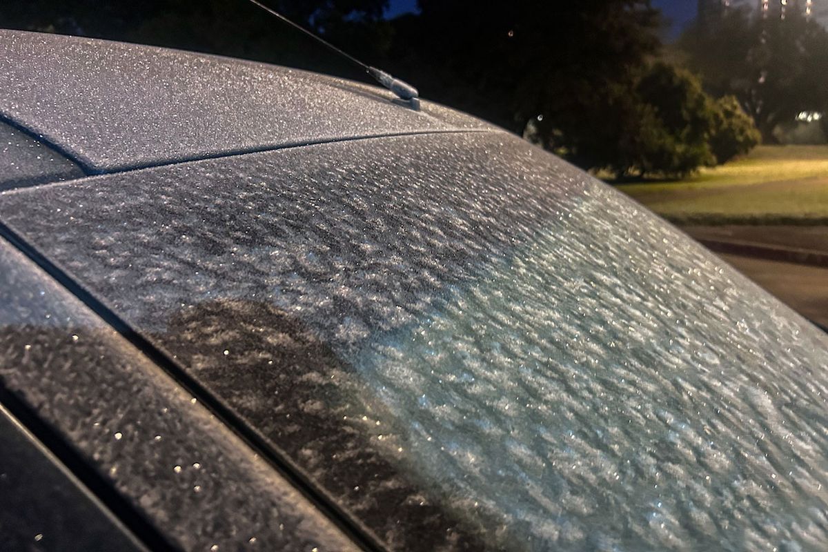 La capital amaneció con fuertes heladas que dejaron escarchas en el pasto y en los autos que estaban al aire libre.