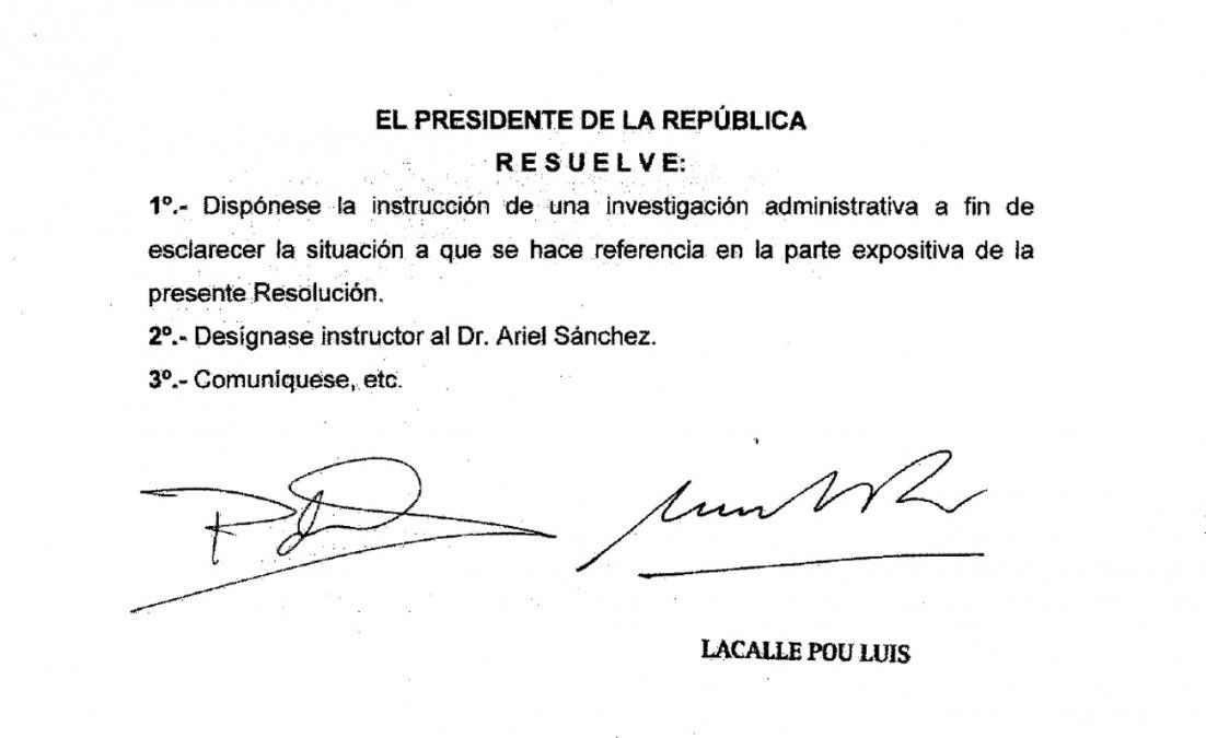 El presidente dispuso esa investigación sobre la base de que todo funcionario público “debe observar estrictamente el principio de probidad, que implica una conducta funcional honesta en el desempeño de su cargo con preeminencia del interés público sobre cualquier otro”, dice el considerando de la resolución a la que accedió Subrayado.