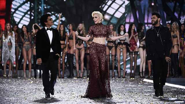 Lady Gaga y Bruno Mars en el desfile parisino de Victoria's Secret