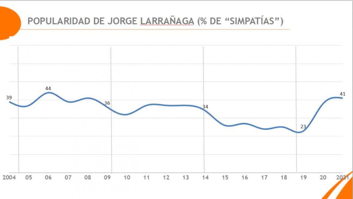 En el último año de gestión de Larrañaga frente al Ministerio del Interior el porcentaje de simpatía hacia el encargado de la cartera había crecido de un 23% de la población encuestada al 41%.