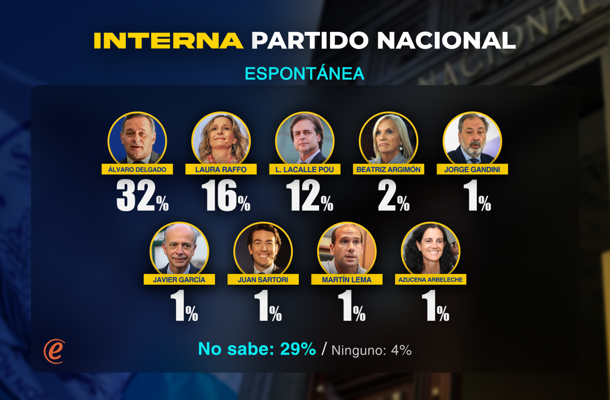 En el Frente Amplio, se confirma el posicionamiento de Orsi y en el Partido Nacional, de Álvaro Delgado. En el Partido Colorado, el liderazgo de Bordaberry es notorio.