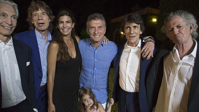 Acompañado por su esposa Juliana Awada y su hija Antonia, el presidente argentino recibió a Mick Jagger, Ronnie Wood, Charlie Watts y Keith Richards, en un marco informal donde se tomaron varias fotografías juntos.