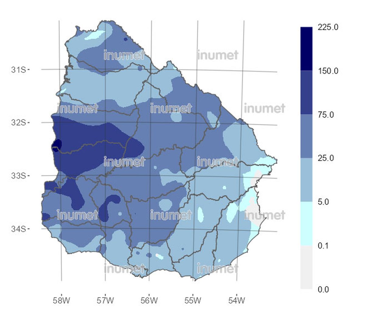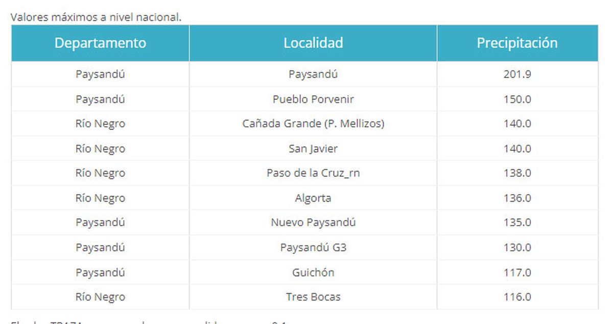 A su vez, otras tres localidades de Paysandú tuvieron registros de 117, 130 y 135 mm.