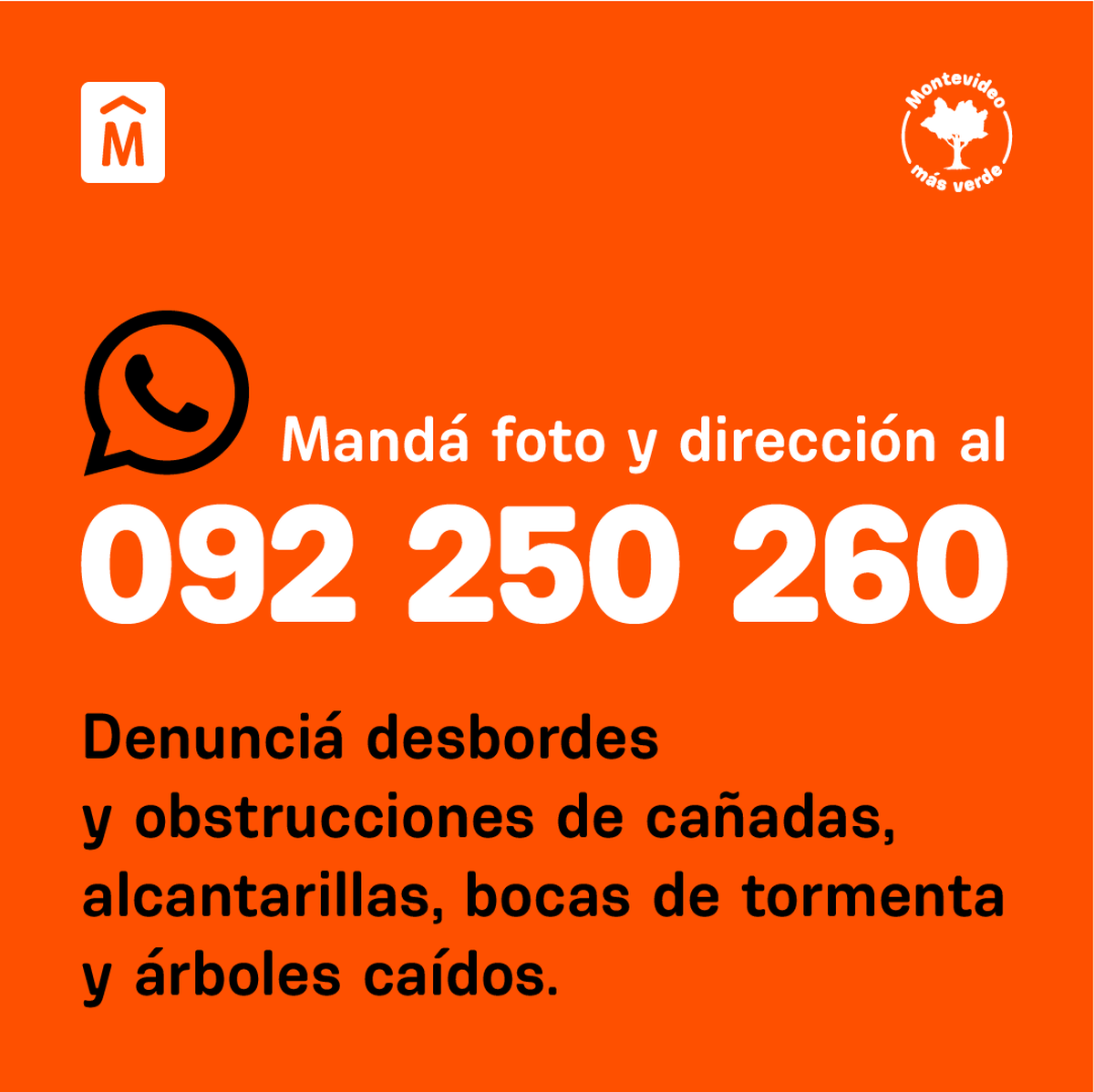 Por su parte, la Intendencia de Montevideo recordó que ante desbordes y obstrucciones se puede llamar al 092250260.