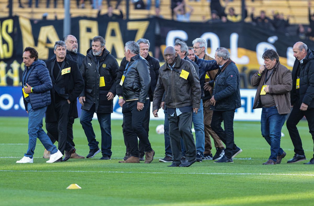 Antes del partido, Peñarol homenajeó a los futbolistas campeones de la Libertadores de 1982, entre ellos Mario Saralegui, Fernando Alvez, Venancio Ramos y Walter "Indio" Olivera.