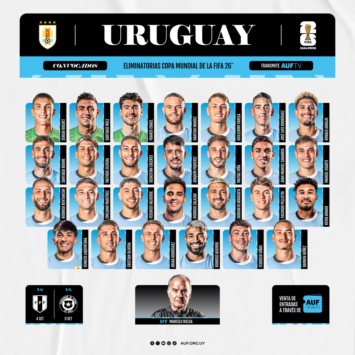 Por su parte, José María Giménez, Nicolás de la Cruz y Maximiliano Araújo quedaron afuera de la convocatoria por lesión.